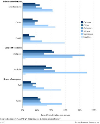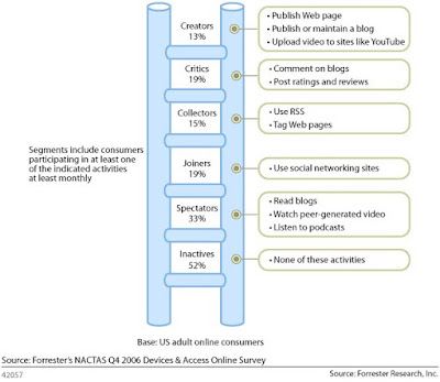 Forrester刚刚发布了一个关于网络用户在互联网上进行社会活动的报告。这份报告把美国网民按照其参与网络社会活动的行为习惯,划分成六种类型,分别是: